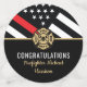 This design features a firemen's flag with black and white stripes, and a thin red line stripe as well. "Congratulations" and a fireman's badge sits above the name of the graduating firefighter. This design also works great for retiring firefighters, lieutenants, or chiefs. Celebrate in style!