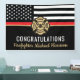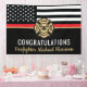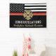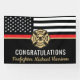 This design features a firemen's flag with black and white stripes, and a thin red line stripe as well. "Congratulations" and a fireman's badge sits above the name of the graduating firefighter. This design also works great for retiring firefighters, lieutenants, or chiefs. Celebrate in style!