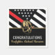 This design features a firemen's flag with black and white stripes, and a thin red line stripe as well. "Congratulations" and a fireman's helmet sits above the name of the graduating firefighter. This design also works great for retiring firefighters, lieutenants, or chiefs. Celebrate in style!