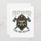A scary face in a mask with firefighter fire and rescue around it. This design looks really effective on these Flat Note Card
