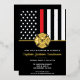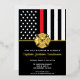 This design features a firemen's flag with black and white stripes, and a thin red line stripe as well. A fireman's badge sits above all of the party details for the retiring firefighter, lieutenant, or chief's retirement party.