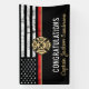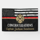 This design features a firemen's flag with black and white stripes, and a thin red line stripe as well. "Congratulations" and a fireman's badge sits above the name of the retiring firefighter, lieutenant, or chief. Celebrate in style!