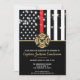This design features a firemen's flag with black and white stripes, and a thin red line stripe as well. A fireman's badge sits above all of the party details for the retiring firefighter, lieutenant, or chief's retirement party.