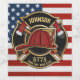 Firefighter NAME Fireman Fire Department USA Flag design - Emblem with Red Helmet and Axe. Customize with your Name, Station/Dept Number and location.