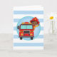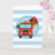 This design features a cute African American fireman in his fire truck, waving hello!. Red, blue, yellow and turquoise with wide stripes.