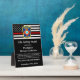 Celebrate and show your appreciation to an outstanding Firefighter with this Thin Red Line Firefighter Life Saving Award - American flag design in Firefighter Flag colours , modern black red design with custom fire department logo. Personalize this firefighter award with fireman name, text with fire department name, logo and community, and date of issue. Perfect of firefighter retirement awards, fire service awards, and firemen recognition and appreciation. COPYRIGHT © 2020 Judy Burrows, Black Dog Art - All Rights Reserved. Firefighter Life Saving Award Thin Red Line plaque