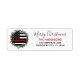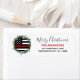 Ajoutez la touche finale à vos enveloppes, cartes de Noël et stationnaire avec cette étiquette d'adresse de retour de pompier Thin Red Line - Couronne de vacances dans un drapeau américain aux couleurs du drapeau de pompier, design moderne noir rouge et blanc avec sainte et baies. Personnalisez avec le nom de famille et l'adresse. Cette étiquette d'adresse de retour de Noël du pompier est parfaite pour les familles de pompiers ou les cartes de Noël du service des incendies. DROIT D'AUTEUR © 2020 Judy Burrows, Black Dog Art - Tous droits réservés. Étiquette de retour de la couronne de pompier mince Red Line