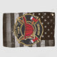 Firefighter NAME Fireman Fire Department USA Flag design - Emblem with Red Helmet and Axe. Customize with your Name, Station/Dept Number and location.