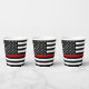 Thin Red Line Firefighter Party Paper Cups - USA American flag design in Firefighter Flag colours. These firefighter paper cups are perfect for your fire department party, firefighter retirement party, or fire academy graduation.