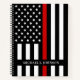 Thin Red Line Firefighter Notebook - American flag in Firefighter Flag colours, modern black and red design . Personalize with firefighter name. This personalized firefighter notebook is perfect for fire departments an fire service. COPYRIGHT © 2020 Judy Burrows, Black Dog Art - All Rights Reserved. Firefighter Personalized Name Thin Red Line Notebook