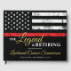 This design features a firemens flag with black and white stripes, and a thin red line stripe as well. "The Legend is Retiring" text sits above the name of the retiring firefighter, lieutenant, or chief's retirement party details. Celebrate this milestone in style!