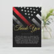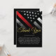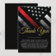This design features a police force flag with black and white stripes, and a thin blue line stripe as well. This card is great for sending a thank you message to all the guests who attended the retiring law enforcement officer, sheriff, captain, or chiefs retirement party.