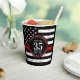 Thin Red Line Firefighter Retirement Paper Cups - USA American flag design in Firefighter Flag colours. This personalized firefighter retirement napkins are perfect to celebrate your retired fireman, firefighter retirement party decor, fire station retirement party. Personalize these firefighter retirement party napkins with firefighters, name , years of service, service years and message.