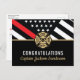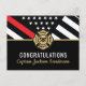 This design features a firemen's flag with black and white stripes, and a thin red line stripe as well. "Congratulations" and a fireman's badge sits above the name of the graduating or retiring firefighter, lieutenant, or chief. Celebrate in style!