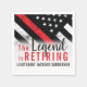 This design features a firemens flag with black and white stripes, and a thin red line stripe as well. "The Legend is Retiring" text sits above the name of the retiring firefighter, lieutenant, or chief. Celebrate in style!