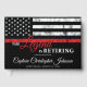 This design features a firemens flag with black and white stripes, and a thin red line stripe as well. "The Legend is Retiring" text sits above the name of the retiring firefighter, lieutenant, or chief's retirement party details. Celebrate this milestone in style!