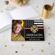 This design features a firemen's flag with black and white stripes, and a thin red line stripe as well. "Congratulations" and a fireman's badge sits above the name of the graduating or retiring firefighter, lieutenant, or chief. Celebrate in style! Customize even further with a photo of the retiring firefighter.
