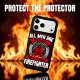 A firefighter proudly displays a unique t-shirt emphasizing equality and the special role of firefighters. The vibrant design includes striking colours and bold text, creating an inspiring message against a neutral backdrop.