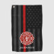 A custom name/ monogram Firefighter flag golf towel. The thin red line running across the entire item is representative of American Firefighters and fire rescue.