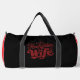 This Red Duffle Bag features a bold red graphic at the top: two crossed firefighter axes with a star in the centre. Below this, the word "Firefighter" is written in a stylized script font, with "WIFE" directly underneath in a similar font, accented by small stars. The design honours the wife of a firefighter.