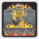 A firefighter jams on an electric guitar with massive speakers in the background! My Hero, firefighters rock text with flames! Firefighters are heroes, great music inspired firefighting gifts!