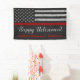 Happy Retirement! Add the finishing touch to your firefighter retirement with these thin red line firefighter retirement banners and party supplies. USA American flag design in Firefighter Flag colours, distressed vintage design on grey black leather . This happy retirement firefighter retirement collection will be a favourite. Personalize with fireman name, and happy retirement can be changed to congratulations for either firefighter retirement party, or fire academy graduation party. See our thin red line collection for matching firefighter retirement invitations, firefighter gifts, party favours, and supplies. COPYRIGHT © 2020 Judy Burrows, Black Dog Art - All Rights Reserved. Fireman Thin Red Line Firefighter Retirement Banner
