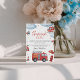 A cute firetruck-themed birthday thank you card featuring watercolor fire engines, firefighter gear, a rescue helicopter, and playful red-and-yellow accents. Perfect for thanking guests after a firefighter or fire station–themed birthday party. Fully customizable with your child's name and message. Ideal for printable or digital use.