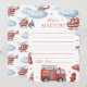 Firetruck-themed birthday message card featuring watercolor fire engines, helicopter, clouds, megaphone, fire hydrant, and safety cones. Perfect for a firetruck or firefighter-themed first birthday time capsule, guest book notes, keepsake letters, and memory messages for baby Mattew. Coordinates with matching firetruck invitations, thank you cards, banners, and party décor. A sweet way for guests to write wishes and love notes.