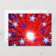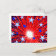 Un feu d'artifice explosant sous une douche d'éblouissantes étoiles bleues et blanches contre un ciel rouge et bleu. Carte postale avec un design personnalisable rouge, bleu et blanc pour vous permettre de personnaliser avec votre propre texte, photos et idées. . Créé à l'aide de photographies originales et de techniques numériques de Jess Perry.