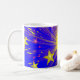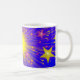 A firework exploding in a shower of dazzling gold and pink stars against a blue sky. Mug with a yellow, pink, blue and white customizable design for you to personalise with your own text, pictures and ideas. Available in all style options. Created using original photographs and digital techniques by Jess Perry.
