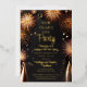 Modern and elegant fireworks, party hats and confetti black and faux gold with real gold foil text "New Year's Eve Party" design.