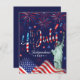 Fireworks Fourth Of July With The Statue Of Libert blue, red & white fireworks & American flag display set on a blue background with the Statue of Liberty to celebrate Independence Day. Happy 4th of July, Flip the back of our summer patriotic holiday invite over to view a matching back. Stylish invitation for a memorial day barbecue, 4th of July cookout, labour day party, or any patriot themed party.