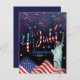 Fireworks Fourth Of July With The Statue Of Libert blue, red & white fireworks & American flag display set on a blue background with the Statue of Liberty to celebrate Independence Day. Happy 4th of July, Flip the back of our summer patriotic holiday invite over to view a matching back. Stylish invitation for a memorial day barbecue, 4th of July cookout, labour day party, or any patriot themed party.