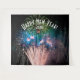 This modern Happy New Year photo booth backdrop or banner features a coloful display of blue, green, and white fireworks on a black background the text "Happy New Year!" and the year in white retro typography, and is a great photo prop for your New Year's celebration or party. Text can be customized with your own text, if desired. This is modern photo booth backdrop will work great for taking your family photos or pictures of your guests as you ring in the new year!