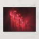 A post card featuring a photo of exploding red firework rockets.