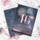 Announce the celebration for your 16th birthday with these elegant fireworks display party invitations! A striking color palette of rose gold on a midnight blue, star-studded night sky gives this design an eye-catching appeal. Your name, in flowing script text, is displayed over a number '16' that virtually glows. Easily personalize with your party details using the provided template. Search ID984 to see all the products in this set.