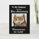 Give an original watercolor painting card of an owl to your husband for a first anniversary celebration. "Whoooo Do I Love?"" He will have a hoot and a smile at the funny verse on the inside and the wildlife design showing realistic details in bold colours of brown and black. Fans of nature art will love this card with a unique closeup view of a handsome owl.