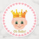 Elegant first baby birthday party table confetti framed with pink hearts. Cute baby face on white confetti. Text can be personalized.