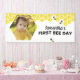 First Bee Day Birthday Banner with Honeycomb and Yellow and Black Design