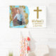 This cute first birthday and baptism napkin will be great for your little boy's party. This design features a photo of your child on a blue watercolor background with gold balloons. On the other side is gold text with a gold cross and your child's name. Make a great photo backdrop!