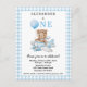 First Birthday Blue Teddy Bear on plane Postcard. To personalize, type the text in place of the sample in the edit field above at right. You can also change the typeface and font colour and size if you wish.
