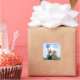 Cute stickers for a First Birthday party. One year old little boy and his puppy sitting in the grass with birthday balloon.