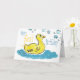 cute little duckie swims across this card for a FIRST BIRTHDAY WISH. inside phrase reads: (One little candle, placed on the cake...One first birthday wish to make! Happy birthday for your very first.) but CAN BE CHANGED! hand drawn animated textured art by kaps images