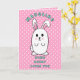 First Birthday Cute Bunny Cartoon Pink Birthday Card