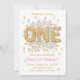 First birthday invitation Girl Pink Gold mint