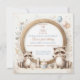 Make your child's birthday extra special with these adorable customizable invitation cards! Featuring a playful raccoon theme, the design includes 2 cute raccoons peeking out from a circular wooden frame surrounded by festive elements like a birthday cake, balloons and a number 1. The light and whimsical background adds to the celebratory mood, creating the perfect setting for your little one’s big day.