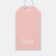 Baby's first birthday. Pastel pink 1st birthday gift bag with 'One' white typography. Perfect for a baby's gift. Beautiful, soft pastel shade. First Birthday Pink Gift Tag.