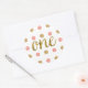 This adorable sticker features polka dots in pink and gold glitter and 'one' in script in a pretty gold glitter. Use it as an envelope seal or favour bag sticker.