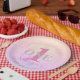 First birthday party paper plates that can be personalized with any age or name. Pretty and pink.