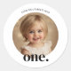 First Bithday Photo Round Sticker in Black & White